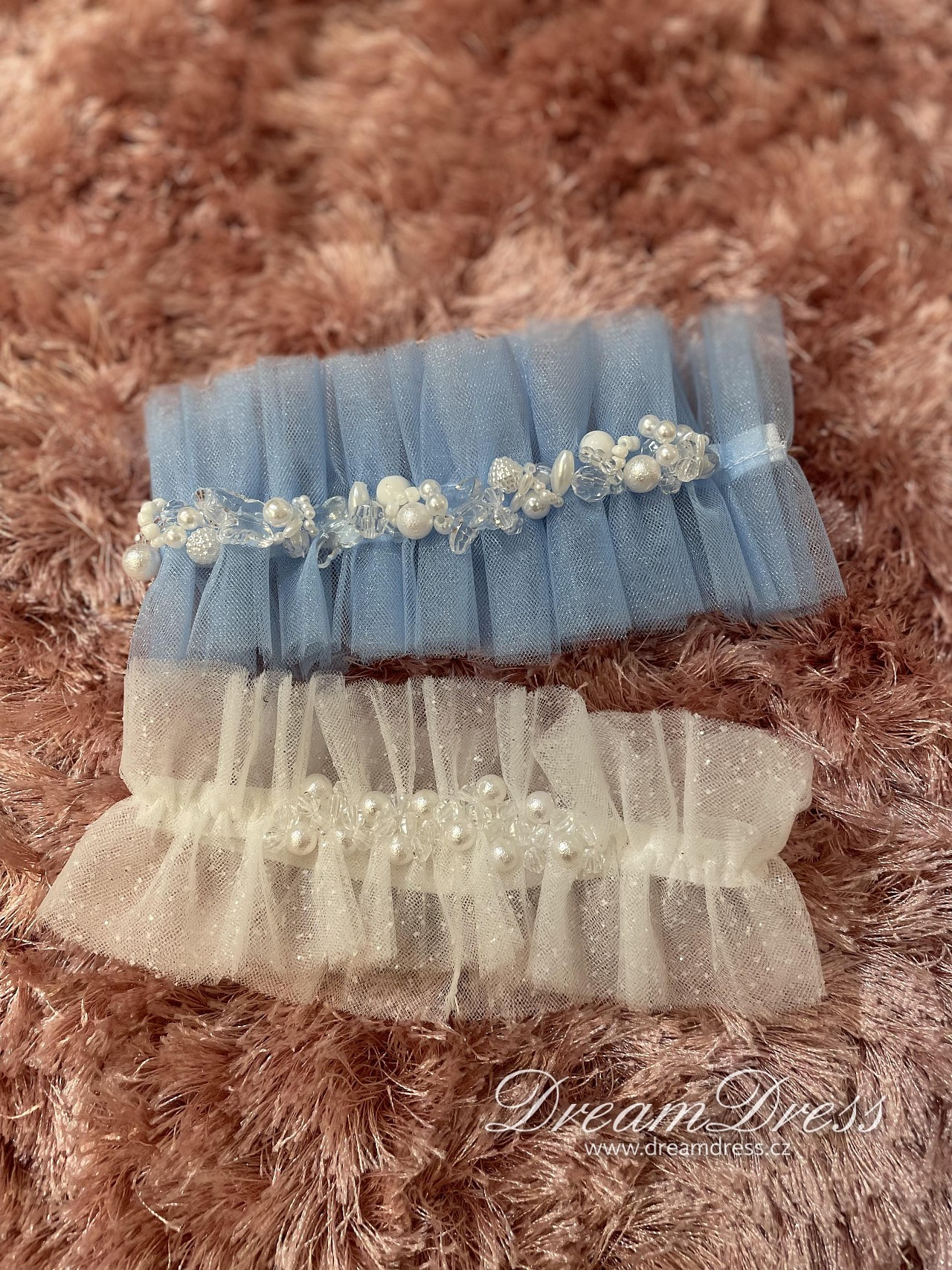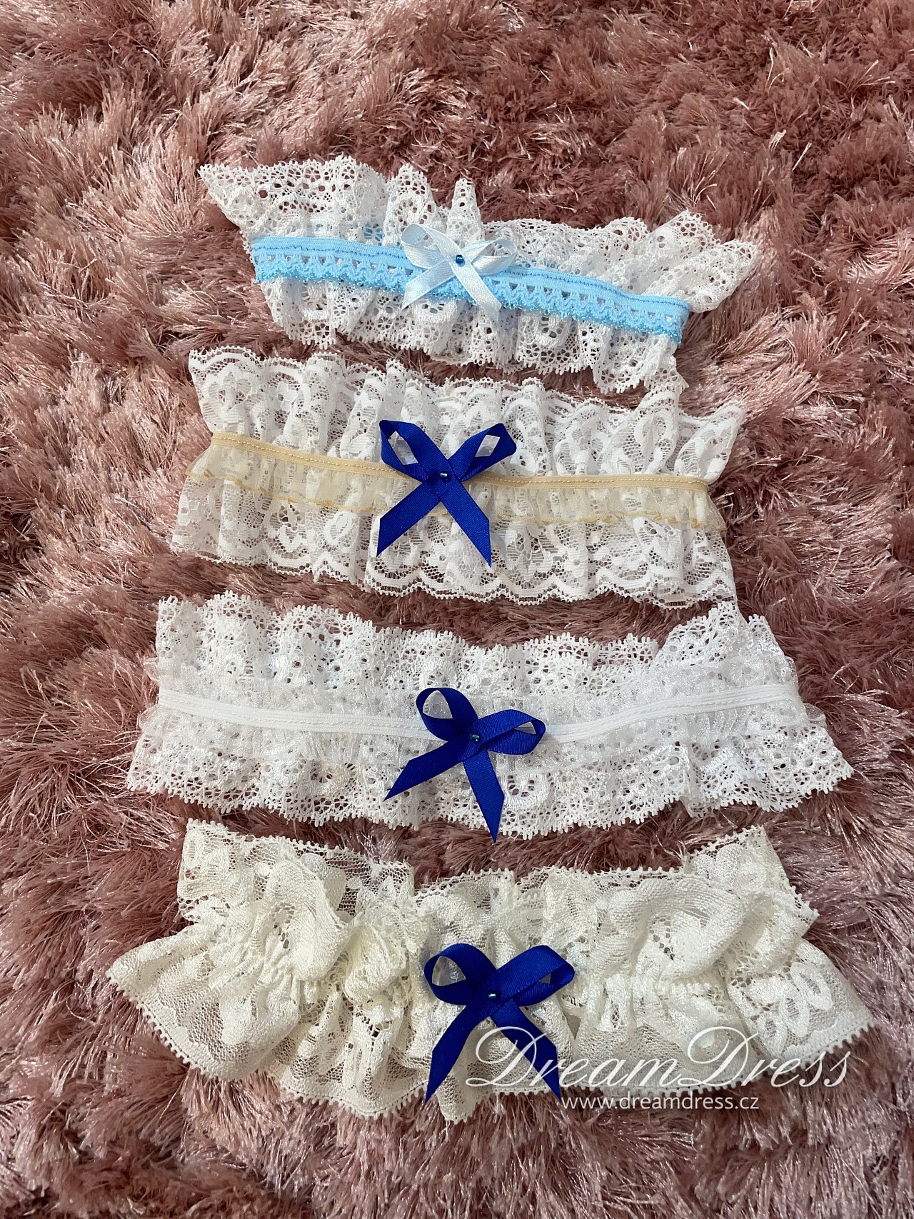 Pokud se držíte tradic, podvazek na svatbě by neměl chybět. Zakoupíte u nás různé podvazky, ale většinou je na něm "něco modrého". Můžeme ušít podvazek i dle vašeho přání. Je to vhodný dárek od svědkyně nebo družičky.